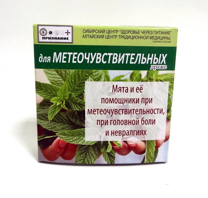 Драже при метеочувствительности, при головной боли и невралгии, а также помогает при тошноте и рвоте, при сухости во рту и изжоге.