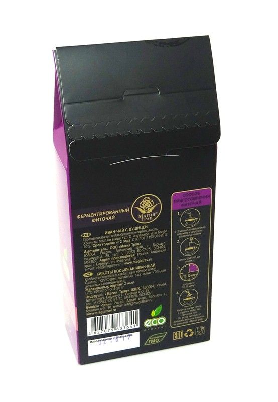 Ферментированный иван-чай с душицей. Иван-чай оказывает седативное, противосудорожное, болеутоляющее, противовоспалительное (особенно при язвенной болезни), вяжущее (при поносе, дизентерии), жаропонижающее действие.