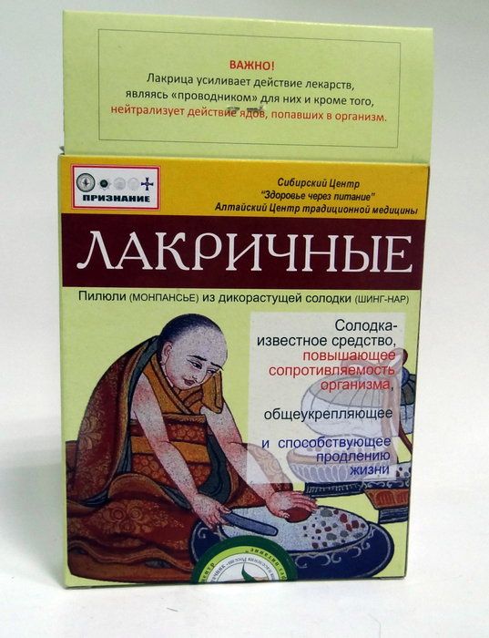 Лакричные пилюли (монпасье) приготовлены из дикорастущей солодки, известной как общеукрепляющее средство, повышающее сопротивляемость организма и способствующее продлению жизни.
