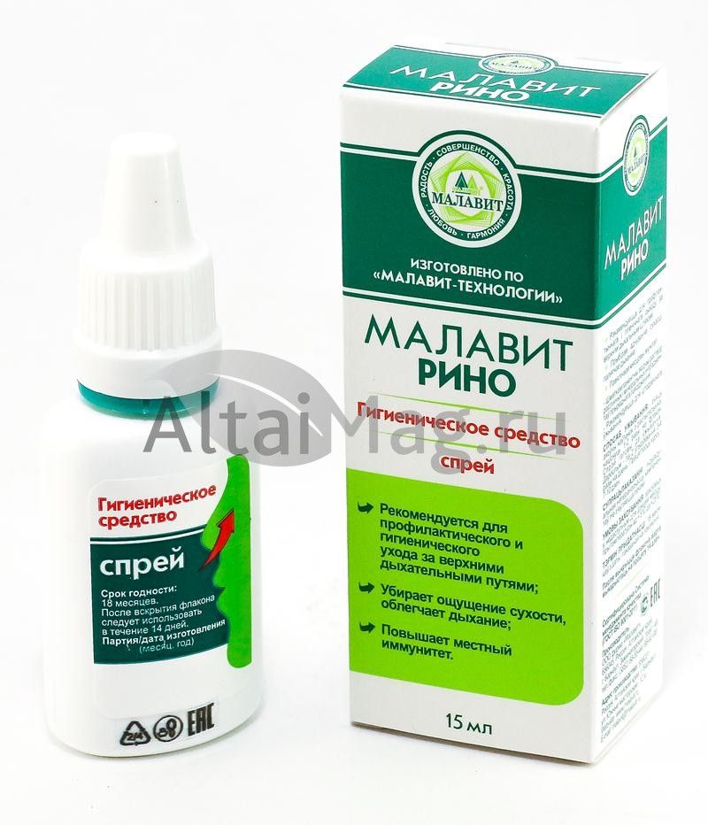 - Купите Малавит рино спрей, 15 мл в Норильске по доступной цене 261 ₽ с доставкой на дом или заберите Ваш заказ в Норильске из ближайшего пункта выдачи, сделав заказ на AltaiMag.ru.