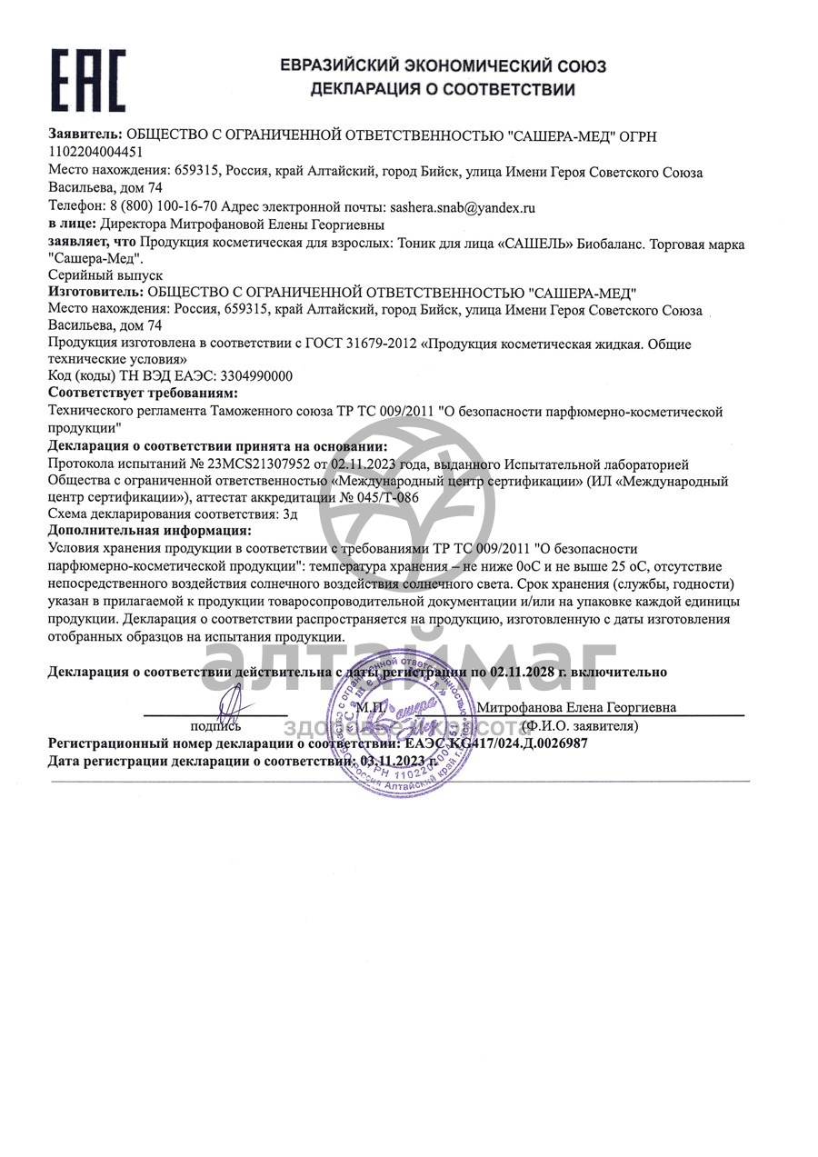 - Чтобы купить Сашель Биобаланс Тоник для лица, 50 мл совершите всего несколько шагов: укажите количество продукта и нажмите на кнопку «Купить».