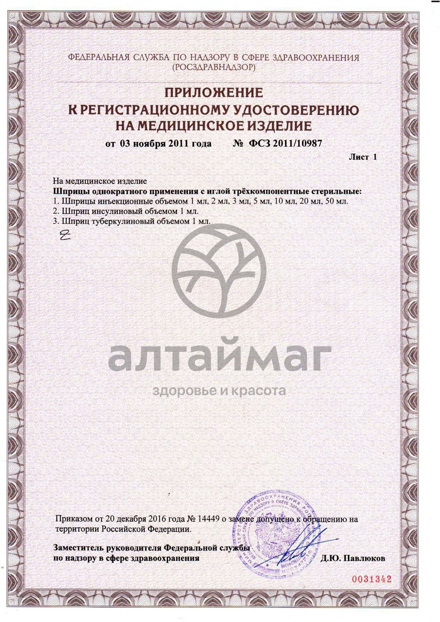 Шприц инъекционный однократного применения с иглой трёхкомпонентный, без латекса.